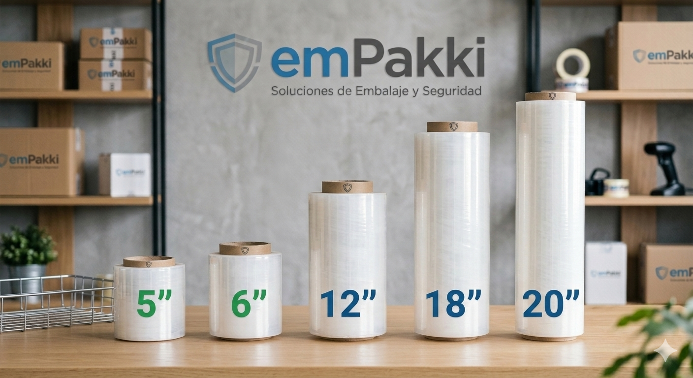 Ya sea que necesites asegurar cajas pequeñas, agrupar perfiles o estabilizar estibas completas, nuestra amplia gama de medidas se adapta a cada etapa de tu logística. Los rollos de 5″ y 6″ son perfectos para aplicaciones manuales rápidas y precisas, mientras que las versiones de 12″, 18″ y 20″ ofrecen la cobertura necesaria para cargas industriales de gran volumen.